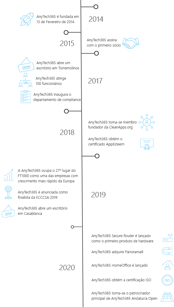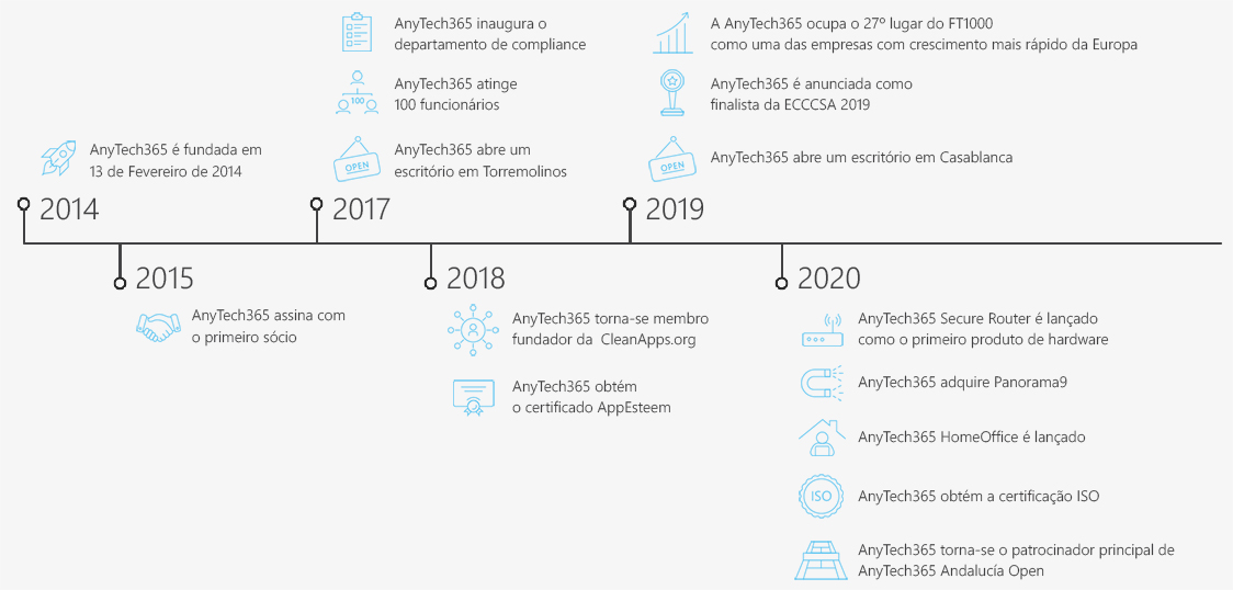 Hoje, somos aproximadamente 400 funcionários e os nossos especialistas em TI nativos estão a oferecer suporte técnico em mais de 15 idiomas. Em 2019, Financial Times classificou a AnyTech365 como no. 27 no top 1000 das empresas com crescimento mais rápido na Europa.